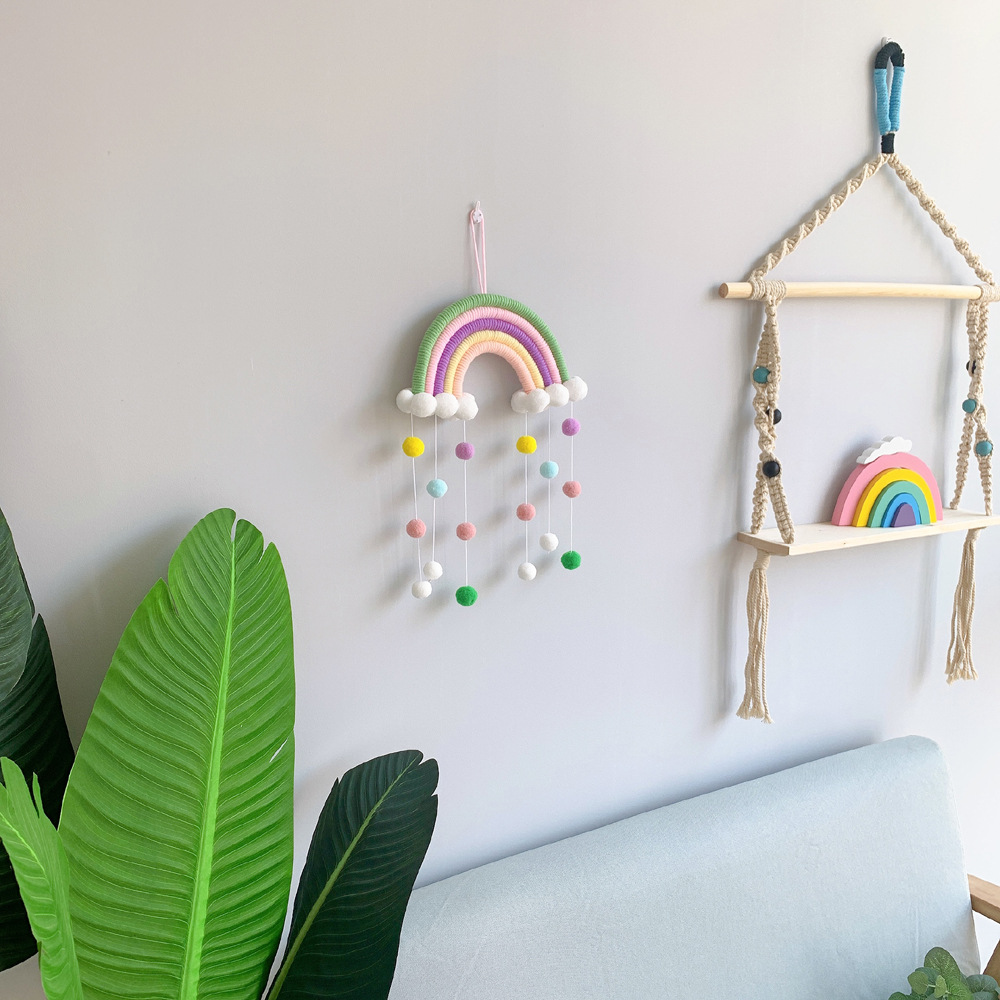 • 商品名称:ins编织云朵彩虹挂饰装饰北欧风家居家饰儿童房装饰挂件壁饰吊饰